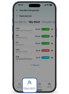 Bước 1: Chọn tab “Giao dịch” ở thanh điều hướng cuối màn hình.