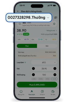 Bước 2: Chọn tiểu khoản muốn giao dịch trên đầu màn hình: