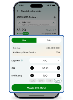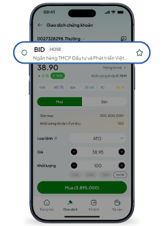 Sau khi truy cập tính năng “Chứng khoán” trên ứng dụng BIDV SmartBanking, để đặt lệnh, Quý khách thực hiện như sau: