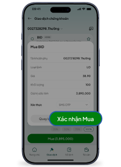 Bước 3: Chọn nút “Mua/Bán” để chuyển sang màn hình xác nhận lệnh.