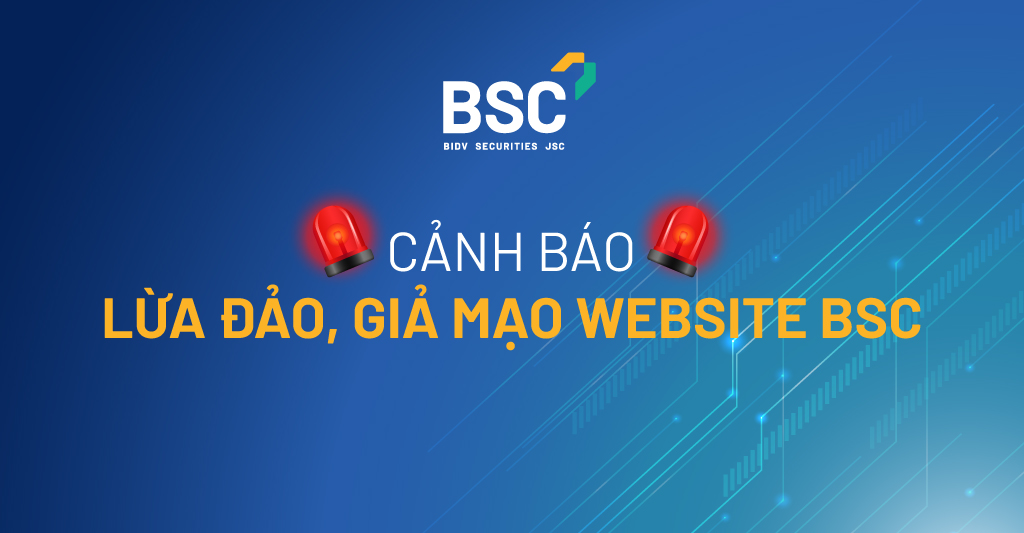 Hiện nay, BSC đã ghi nhận sự xuất hiện của một số địa chỉ Website mạo danh BSC: https://www.bscitd.com/. Đây là website giả mạo, không thuộc quyền quản lý của BSC. Quý khách hàng tuyệt đối không truy cập, không cung cấp thông tin cá nhân và không thực hiện bất kỳ hướng dẫn nào từ Website này để tránh rủi ro lừa đảo.