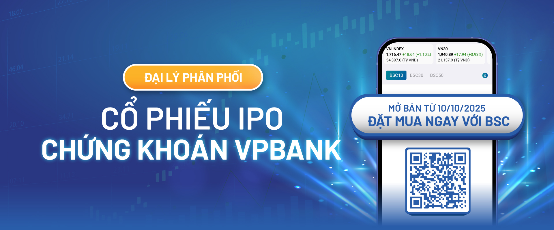 Công ty Cổ phần Chứng khoán BIDV (BSC) là đại lý phân phối cổ phiếu trong đợt phát hành cổ phiếu lần đầu ra công chúng (IPO) của Công ty Cổ phần Chứng khoán VPBankS. Việc đảm nhận vai trò phân phối này không chỉ thể hiện năng lực triển khai nghiệp vụ đầu tư chuyên sâu của BSC, mà còn khẳng định uy tín, kinh nghiệm và vị thế hàng đầu của BSC trên thị trường tài chính Việt Nam. Thông qua sự hợp tác cùng VPBankS, BSC tiếp tục khẳng định cam kết đồng hành phát triển bền vững, hướng tới xây dựng một thị trường vốn minh bạch, chuyên nghiệp và hiệu quả – nơi mọi nhà đầu tư đều có thể tiếp cận cơ hội đầu tư chất lượng. Ngày mở bán: 10/10/2025; |
