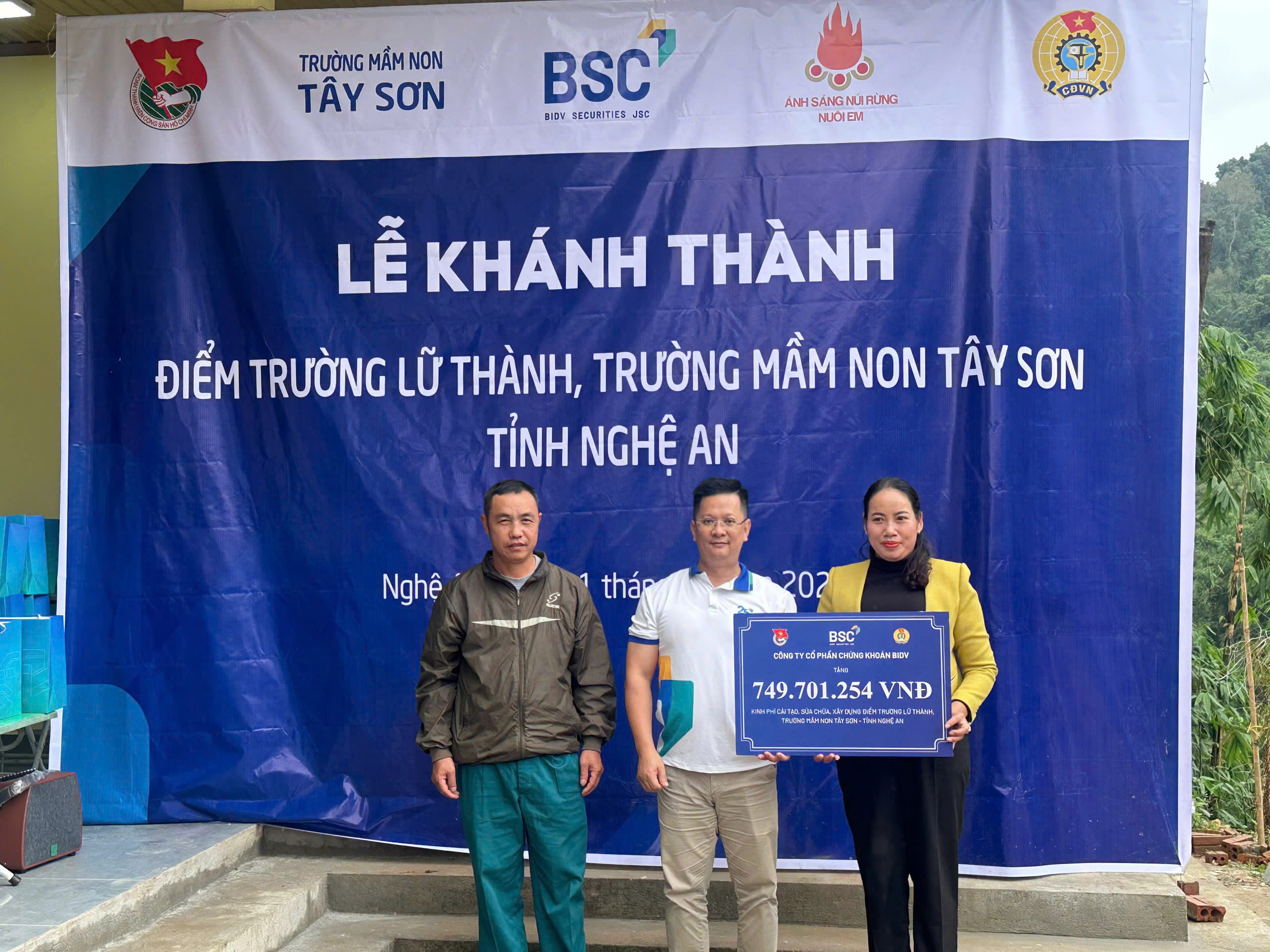 Sau quá trình khảo sát và xây dựng, những ngày cuối tháng 10 vừa qua, BSC đã tổ chức lễ khánh thành và bàn giao điểm trường Lữ Thành thuộc trường mầm non Tây Sơn, bản Huồi giảng, xã Mường Xén, Tỉnh Nghệ An.