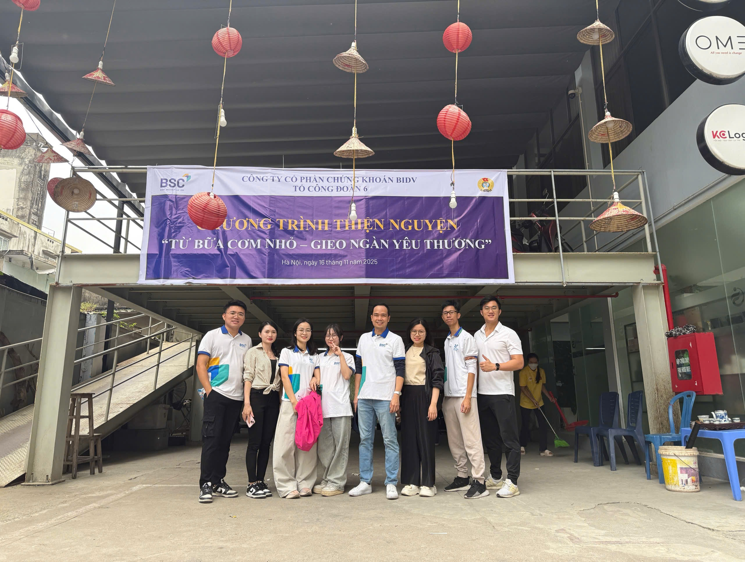Hướng tới kỷ niệm sinh nhật Công ty lần thứ 26 (18/11/1999 - 18/11/2025), sáng ngày 16/11/2025, Tổ Công đoàn 6 bao gồm các phòng: Tài chính Kế toán, Công nghệ thông tin, Dịch vụ Tài chính, Chính sách Sản phẩm Bán lẻ đã phối hợp cùng CLB Thiện nguyện Sen Vàng tổ chức chương trình phát cơm và cháo từ thiện dành cho các bệnh nhi có hoàn cảnh khó khăn tại Viện Nhi Trung ương.